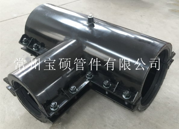 三通哈夫节的结构采用上下结构,内附天然橡胶密封胶垫,使用时对准管道三通部位,螺栓拧紧即可。