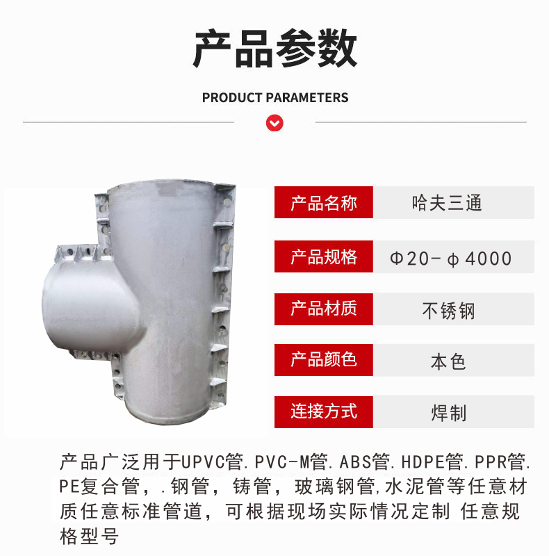 不锈钢哈夫节又名双卡管道连接器,多功能管道修补器,可用于所有材质的柔性管道连接,修补。将管道连接及轴向位移的补偿同时结合起来使得它具有显著的附加价值。