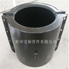 宝硕牌钢管承插大头哈夫节适用渠道是管路抢修装置,是对两管子连接处的承口处漏水进行抢修,上、下卡复体衔接处采用密封条密封,并由螺栓、螺母紧固为一体,该装置结构简单只有两件本体和两件橡胶垫组成的,安装方便,只将两本体对合在漏水处拧紧螺母即可完成对各种液体、气体、压力管道的沙眼、气孔、横向、纵向断裂造成的漏水漏气事故的检修,省工、省时、节约费用。