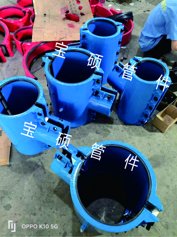 三通哈夫节用于管道的三通管部位发生砂眼、裂缝、断裂的抢修。主要适用于镀锌管、钢管、PE管、PVC管。