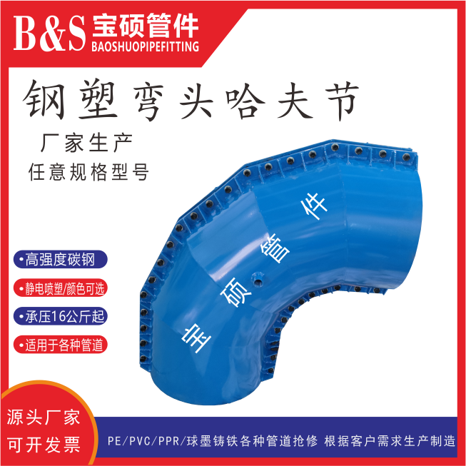 弯头哈夫节具有安装简便、密封可靠、承压能力强等优点,因此在各种管道系统中得到广泛应用。特别是在供水、排水、石油、化工等领域的管道系统中,弯头哈夫节成为了一种重要的管道连接和修复设备。然而,需要注意的是,在使用弯头哈夫节时,需要遵循制造商的操作说明和安全规范,以确保其正常运行和使用安全。