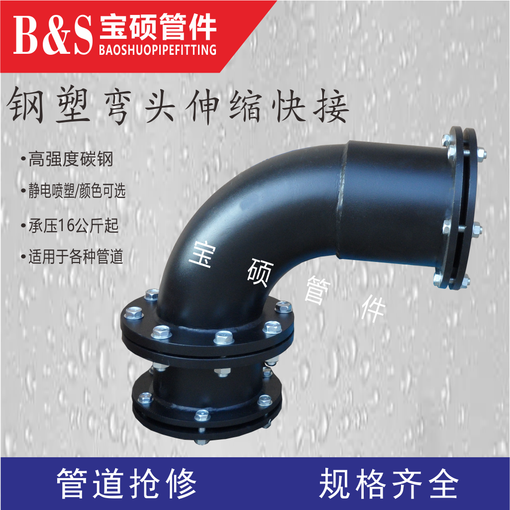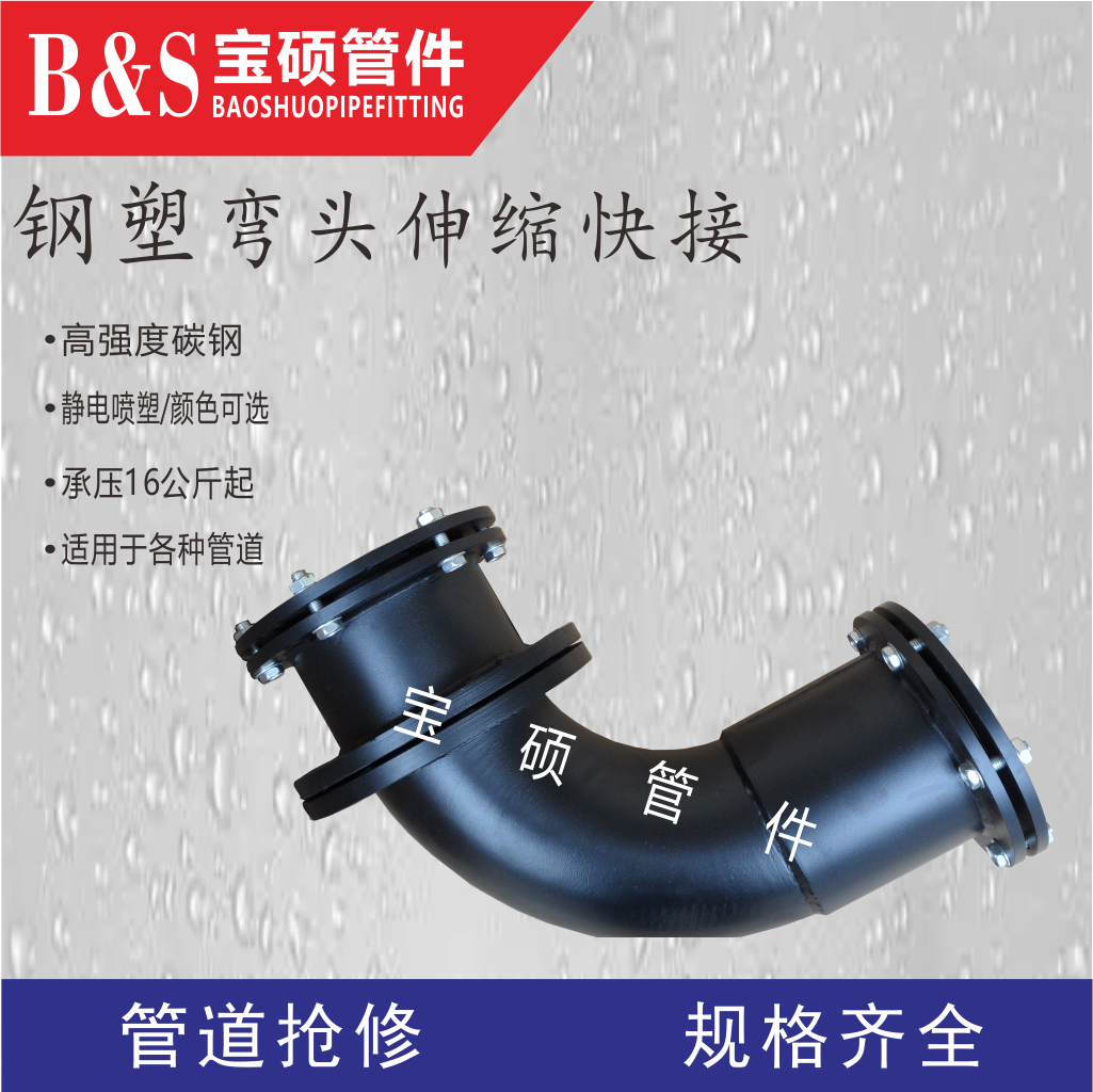 弯头伸缩节又称弯头柔性双向接头,是根据压缩橡胶来达到密封的效果,吸收由于外加原因而对管道带来的破坏,也可以减少震动和噪音,主要功能是用来做管道补偿和管道维修连接用,当管道要改变路径时,弯头伸缩节安装就很简单了,可以免去焊接,电熔,承插等工艺,它是管道修复不可少的工具。