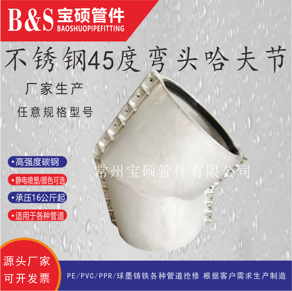 需要注意的是,在选择不锈钢弯头哈夫节时,应根据具体的工程需求、管道材质、工作压力等因素进行综合考虑,以确保其性能和质量满足使用要求。同时,在安装和使用过程中,应严格按照相关规范进行操作,确保管路系统的安全和稳定运行。