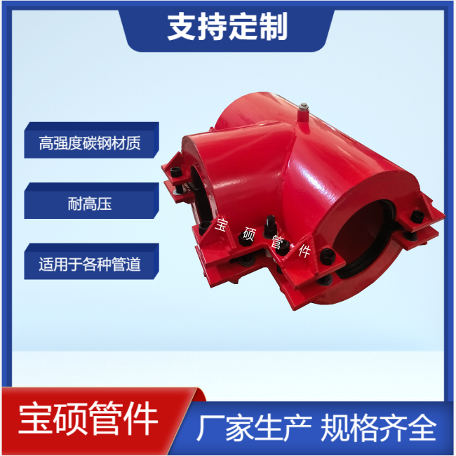 三通哈夫节是一种管道连接件,主要用于管道的三通管部位发生砂眼、裂缝、断裂的抢修工作。这种设备尤其适用于多种材质的管道,包括镀锌管、钢管、PE管、PVC管等。在管道出现砂眼、泄漏、断裂等问题时,使用三通哈夫节进行抢修,可以大大节约成本并提高效率,而不需要重新更换整个管道。