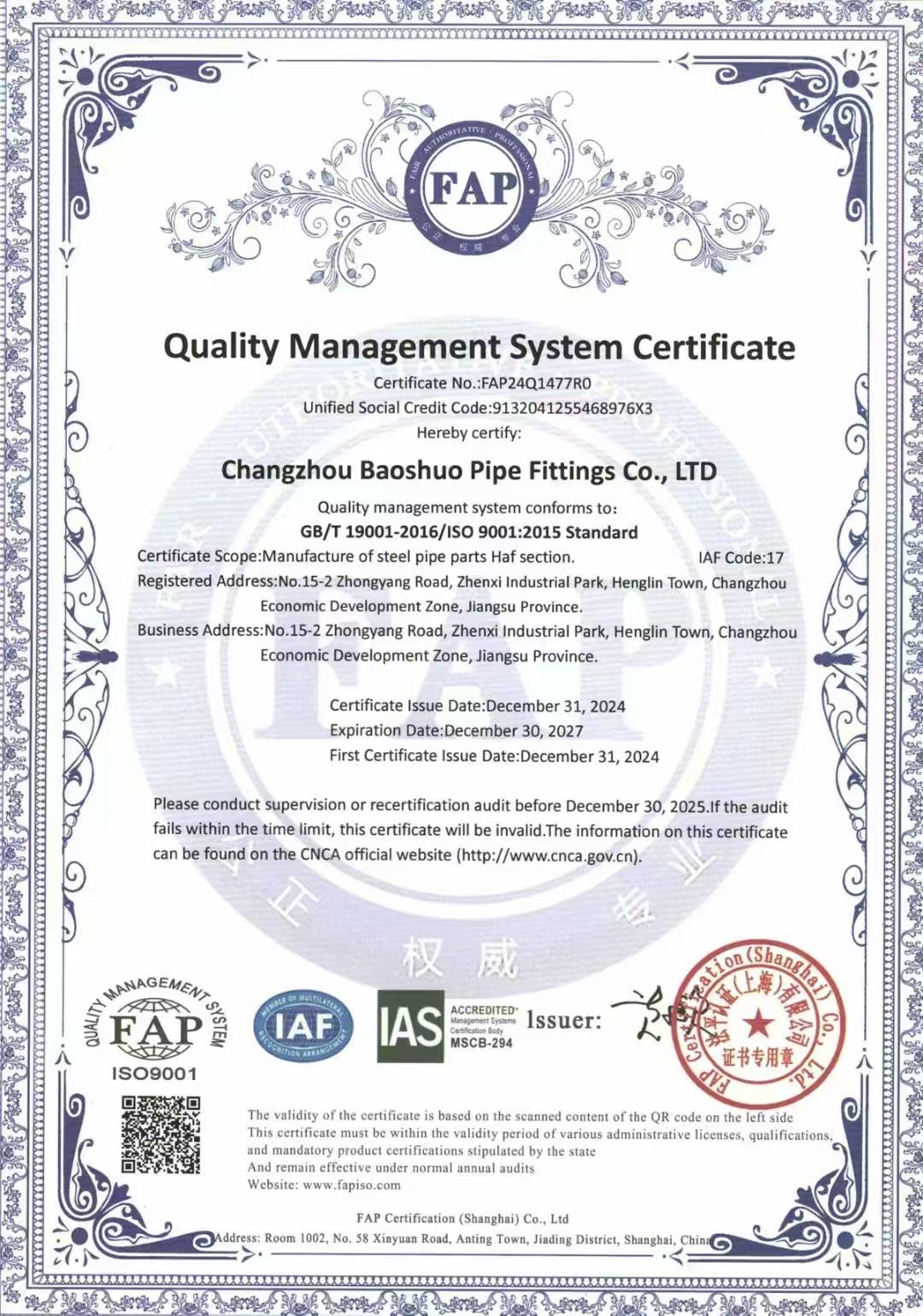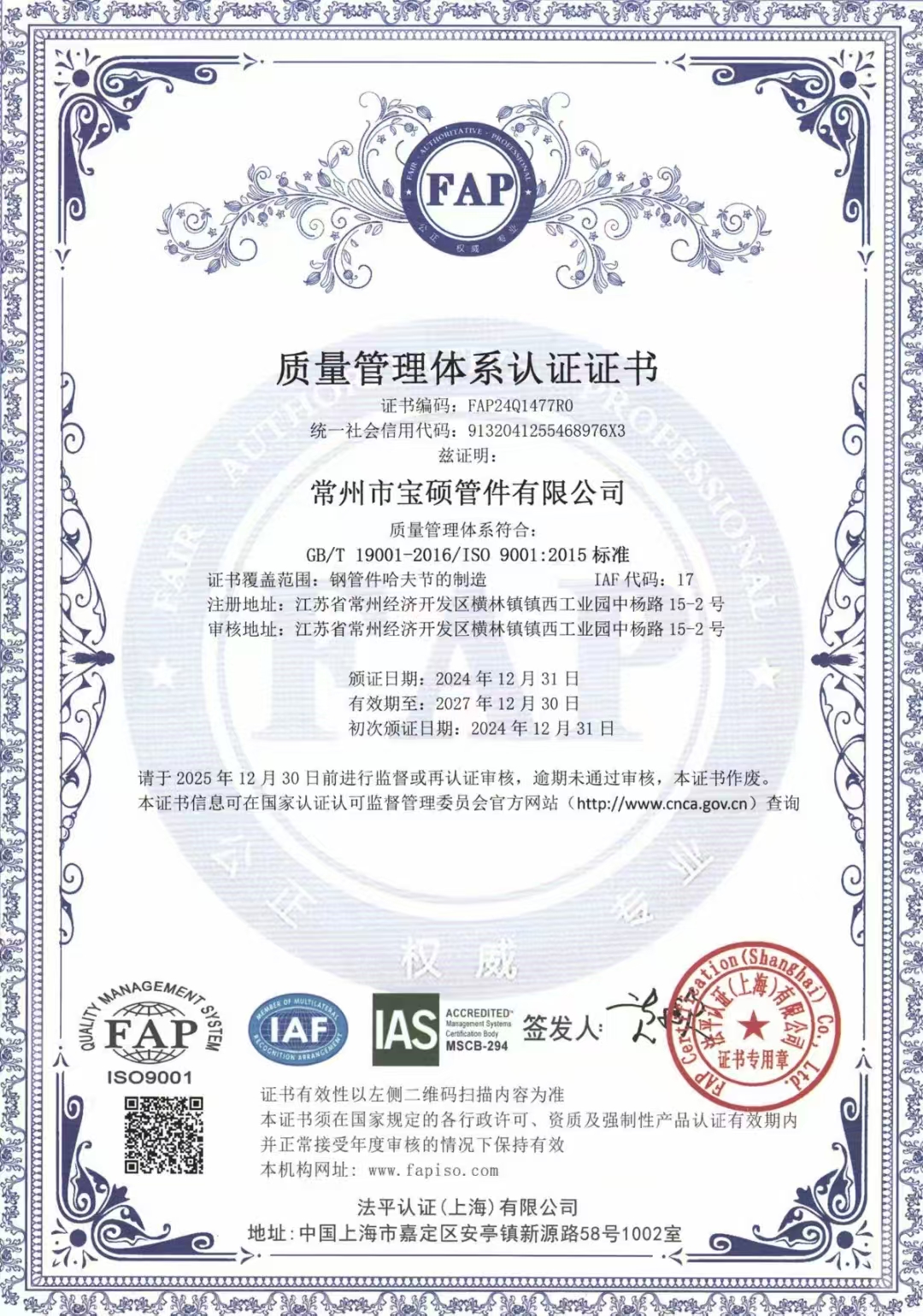 本公司通过了ISO9001质量认证体系