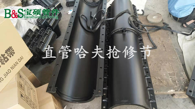 哈夫节抢修特点:维修安装时不用停水停气可迅速漏,省工省时。能做到滴水不漏,采用分块结构,现场施工速度快,无需停水,施工挖掘量小,仅需开挖很小的工作坑即可操作,节省大量的人力物力及时间,快速达到堵漏目的。
