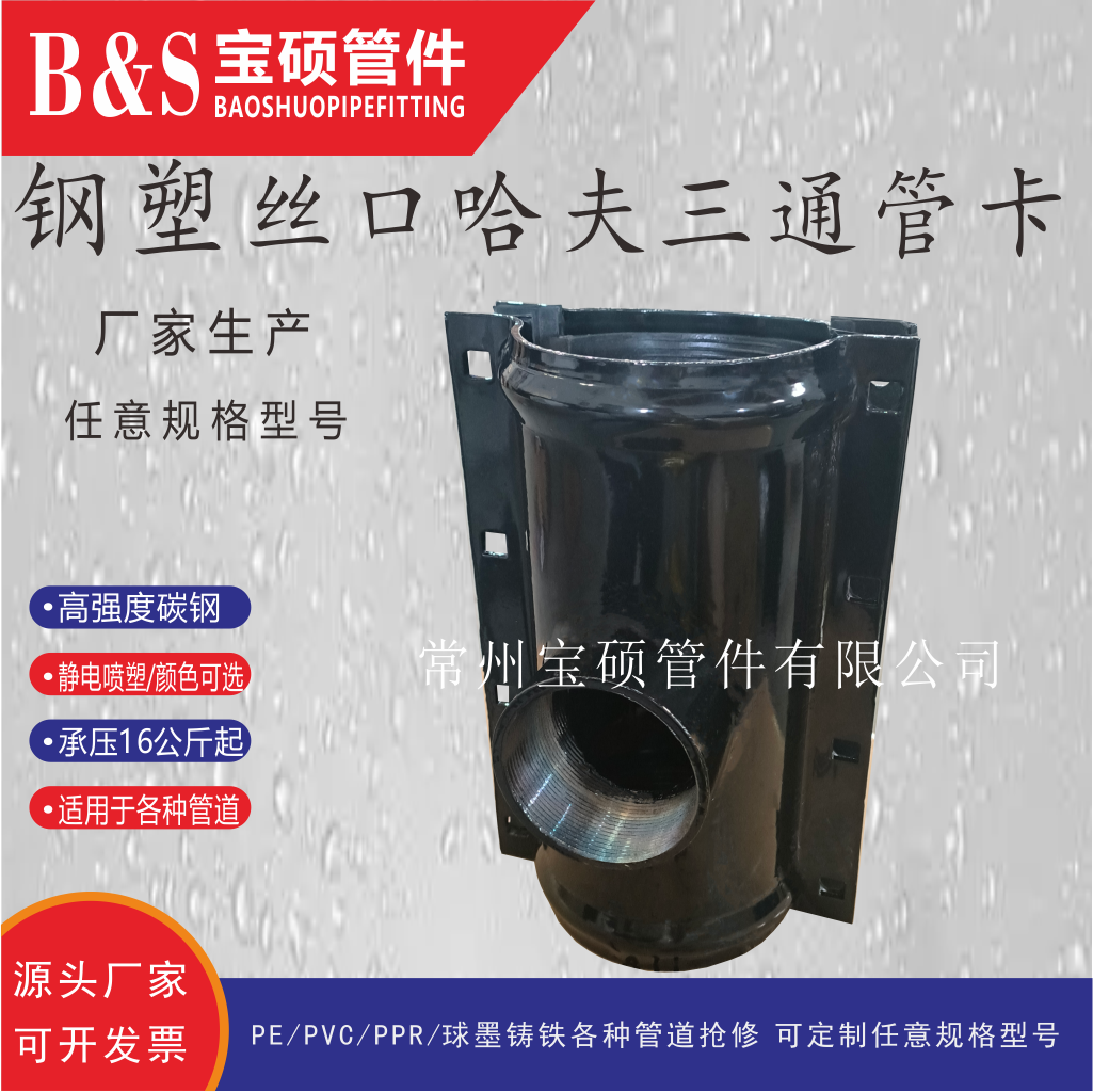 总之,钢塑丝口哈夫三通管卡是一种高效、可靠的管道连接设备,适用于各种管道系统中的三通连接和固定,能够提高管道运行的安全性和可靠性。