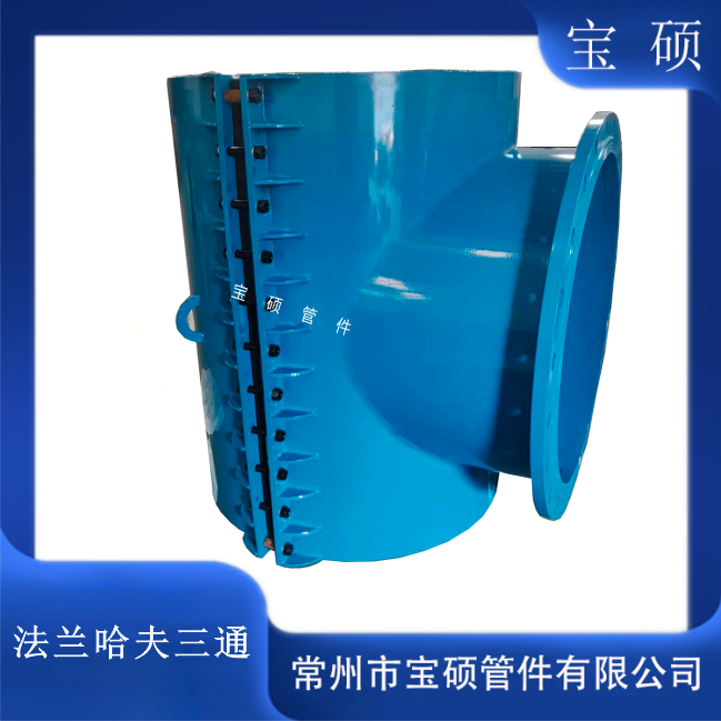 法兰哈夫三通是一种管道连接件,其形状为T字形,具有三个口,其中一个口与管道相连接,另外两个口用于连接其他管道或阀门。它通常用于主管道嫁接分支管道,可以在钢管、球墨管、镀锌管、PE塑料管等管道上嫁接分水。