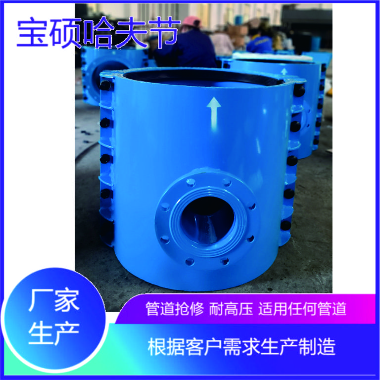 宝硕牌三通哈夫节主要用于管道的三通管部位发生砂眼、裂缝、断裂的抢修