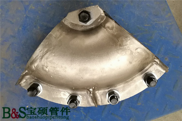 5.弯头哈夫节抢修特点:维修安装时不用停水停气可迅速止漏,省工省时。能做到滴水不漏,采用分块结构,现场施工速度快,无需停水,施工挖掘量小,仅需开挖很小的工作坑即可操作,节省大量的人力物力及时间,快速达到堵漏目的